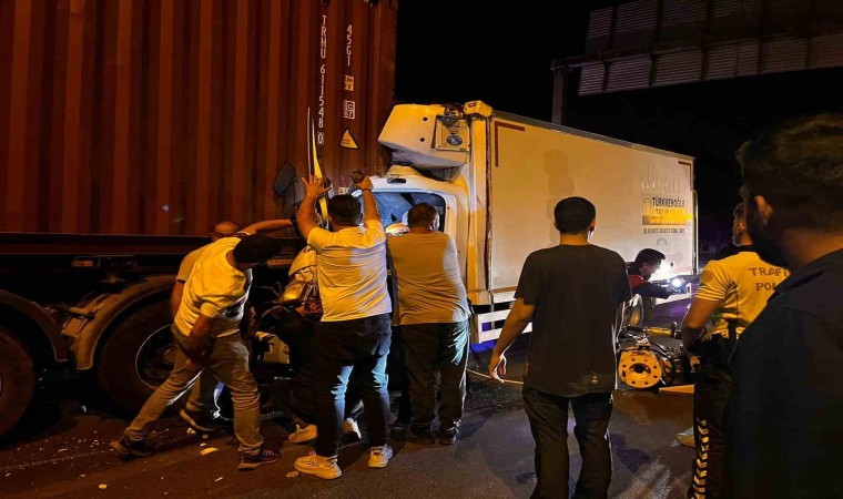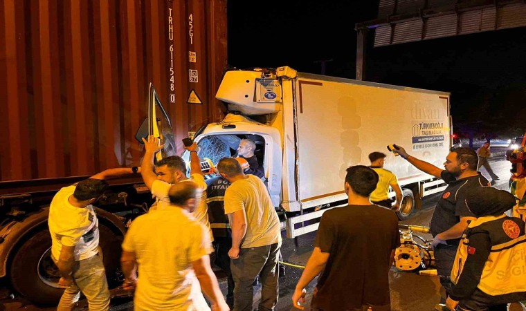 Bolu’da bir kamyon, arıza yaparak duran tırın dorsesine arkadan çarptı. Çarpmanın etkisiyle kamyonda sıkışarak yaralanan sürücü hastaneye kaldırılırken, yediemin otoparkına çekilen kamyon park halindeyken alev aldı.