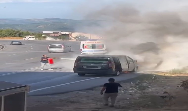 Olay, Bursa’nın Gemlik ilçesi Dürdane rampasında meydana geldi. Edinilen bilgiye göre, dumanlar çıktığını gören minibüs şoförü, aracı kenarı çekti. Aracın motor kısmından yükselen alevler, kısa sürede minibüsü sardı. Yoldan geçen sürücülerin yangın tüpleri ile müdahale ettiği VIP minibüs, kullanılamaz hale geldi.