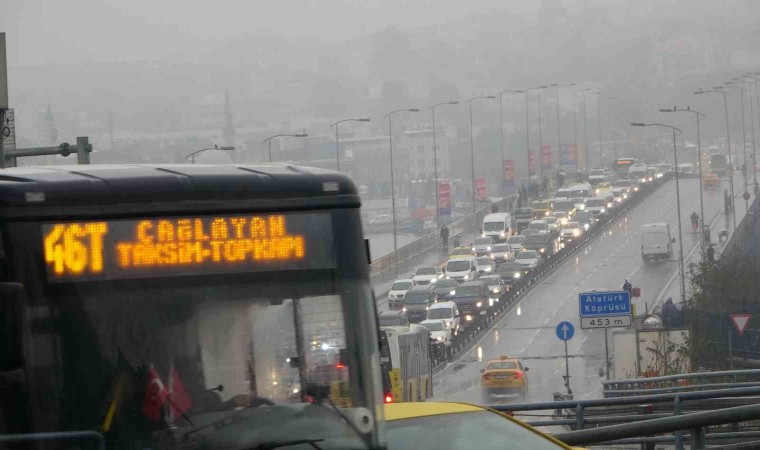Beyoğlu’nda arızalanan İETT otobüsü, uzun süre yolda kalınca yağmurun da etkisiyle Unkapanı Köprüsü’nde trafik felç oldu. Otobüsün yolcularının da yağmurun altında beklemek zorunda kaldığı görüldü.