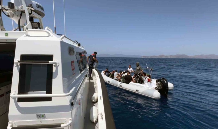 Muğla’nın Marmaris ilçesi açıklarında lastik bot ile yasa dışı yollardan çıkış yaparken lastik botun motor arızası vermesi üzerine sürüklenen bot içindeki düzensiz göçmenler kurtarıldı.