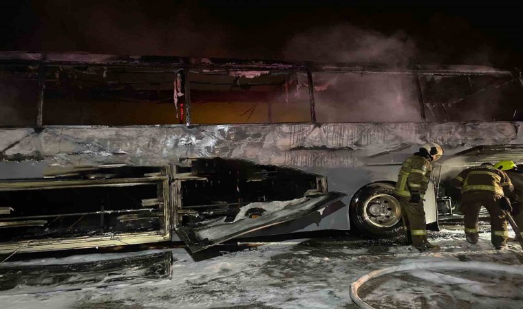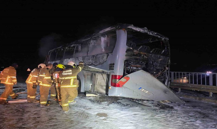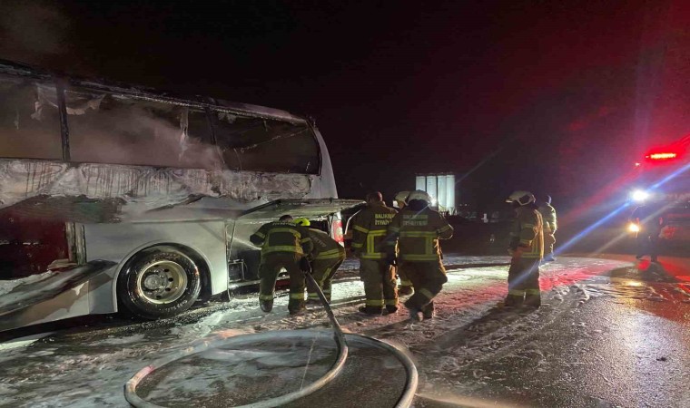 Balıkesir’in Bandırma ilçesinde meydana gelen olayda bir yolcu otobüsü, Gönen Köprüsü üzerinde arızalandı. Sürücü ve görevlilerin dışında kimsenin bulunmadığı otobüs, saniyeler içinde alev topuna döndü. Yoldan geçenler akşam karanlığında yükselen alevleri cep telefonlarıyla görüntüledi. İtfaiye ekiplerinin müdahalesiyle yangın söndürülürken, otobüsün ise küle döndüğü görüldü.