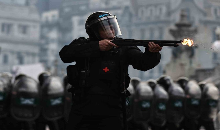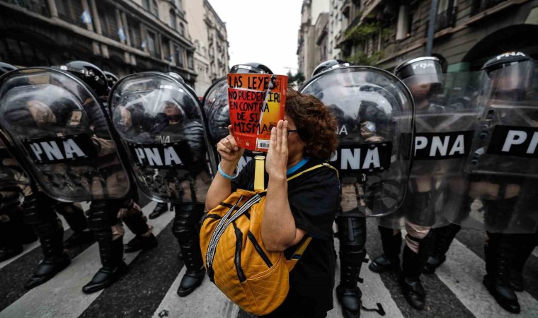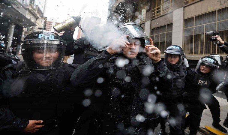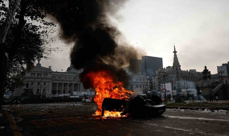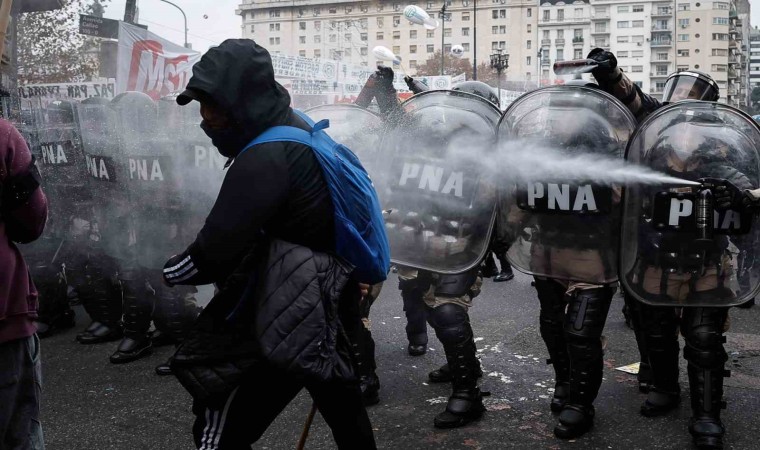 Arjantin’de Devlet Başkanı Javier Milei hükümetinin ekonomik reform paketi nedeniyle binlerce kişi sokaklara döküldü. Reformun halka zarar vereceğini belirten göstericiler, “Ülkemiz satılık değil” sloganları atarak paketin görüşüldüğü Kongre’ye yürüdü. Ancak polisin müdahalesi gecikmedi. Göstericiler göz yaşartıcı gaz ve tazyikli su kullanan polise taş ve molotof kokteyli attı, ortalık savaş alanına döndü. Polisin gazlı müdahalesinden etkilenen 5 muhalif milletvekili hastaneye kaldırıldı. Onlarca kişiye ise olay yerinde tıbbi müdahale yapıldı. Yetkililer, çıkan çatışmada en az 20 polisin yaralandığını, 15 kişinin gözaltına alındığını, ayrıca göstericilerin 2 aracı ateşe verdiğini belirtti.