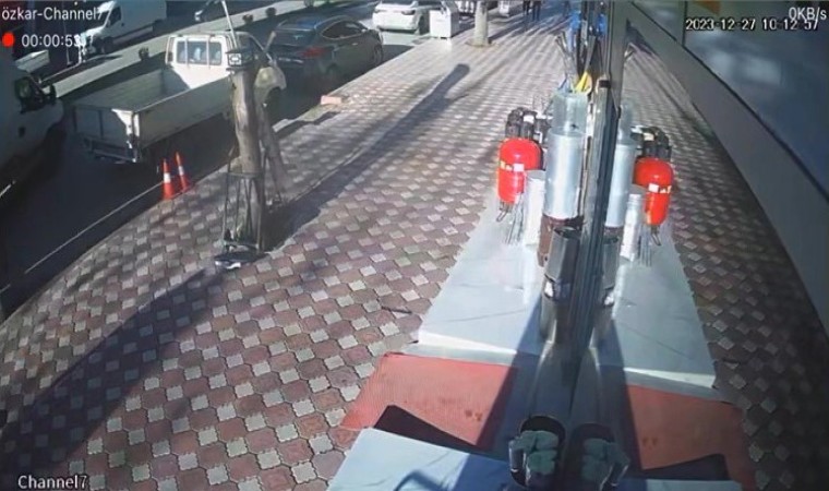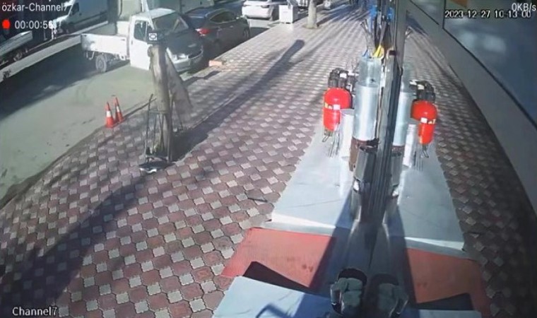 Amasya’da kamyonetin açık unutulan arka kapağı önünde duran pikaba takıldı. Pikabın sürüklendiği anlar kameraya yansıdı.