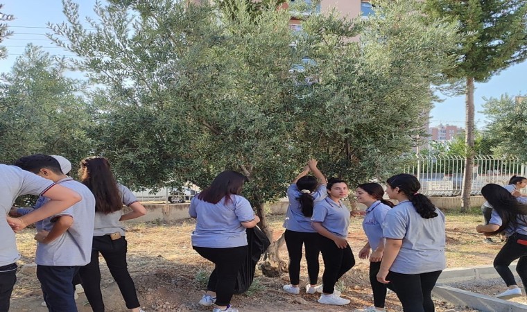Mersin’de lise öğrencileri örnek bir davranışa imza atarak, geliri ihtiyaç sahibi öğrencilerin ihtiyaçlarının giderilmesinde kullanılmak üzere okul bahçesindeki zeytin ağaçlarından zeytin hasat ettiler.