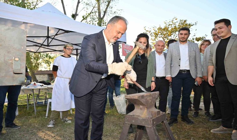Bursa Büyükşehir Belediyesi tarafından bu yıl üçüncüsü düzenlenen Arkeoloji Festivali (Arkeofest), iki gün boyunca her yaştan tarih meraklısını 8 bin 500 yıllık geçmişi bulunan Arkeopark Açık Hava Müzesi’nde buluşturdu. Sikke basımından demir dövmeye kadar 37 farklı atölyede tarihe yolculuk yapan katılımcılar, Rafadan Tayfa ekibinin gösterisiyle de keyifli bir gün geçirdi.