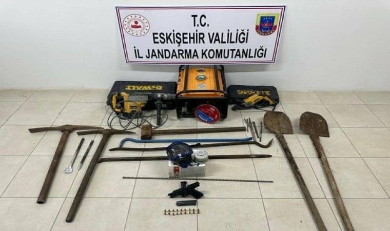 Jandarma, Çifteler ilçesi Örenler mevkiindeki 1’inci derece arkeolojik sit alanında şüpheli şahısların kaçak kazı yaptığı bilgisi aldı. Bunun üzerine çalışma başlatan ekipler, 12 şüpheli şahsı, kaçak kazı yaparken suçüstü yakaladı. Kazı alanında ve şüpheli şahısların araçlarında yapılan aramada; 1 adet kepçe, 1 adet 7.65 mm çapında ruhsatsız tabanca, 18 adet fişek, 8 adet hilti ucu, 3 adet levye, 2 adet matkap, 1 adet jeneratör ve 8 adet muhtelif kazı malzemesi ele geçirildi.