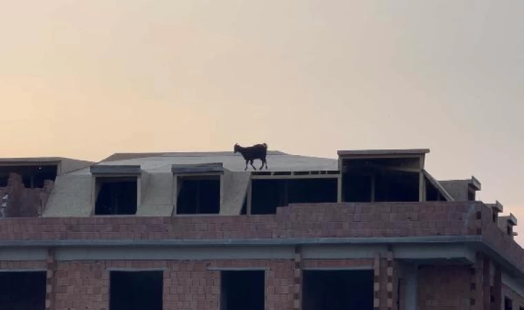 Arnavutköy’de 5 katlı binanın çatısına çıkan keçiyi itfaiye kurtardı