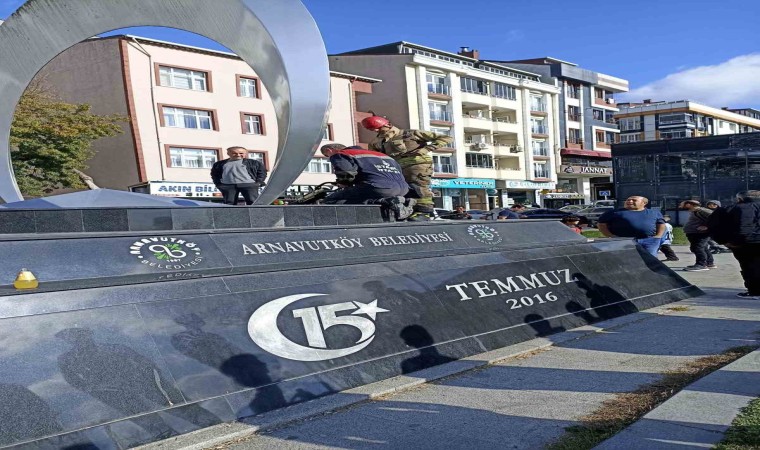 Olay, dün öğle saatlerinde Arnavutköy Merkez Mahallesi’nde bulunan 15 Temmuz Şehitleri Meydanı’nda gerçekleşti. İddiaya göre, bir çocuk Şehitler Anıtı’na parasını düşürdü. Küçük çocuk parasını almak için girdiği anıt içerisinde ise mahsur kaldı. Çocuk, çevredeki vatandaşlardan yardım istedi. İhbar üzerine olay yerine itfaiye ekipleri sevk edildi. Ekiplerin çalışmalarının ardından çocuk kurtarıldı. Küçük çocuğun elindeki parayı anıtın içerisine düşürdüğü daha sonrasında parayı almak için içeriye girdiğinde dar alanda sıkışıp hareket edemediği öğrenildi. Çocuğun anıttan çıkarıldığı anlar, cep telefonu kamerasına yansıdı.