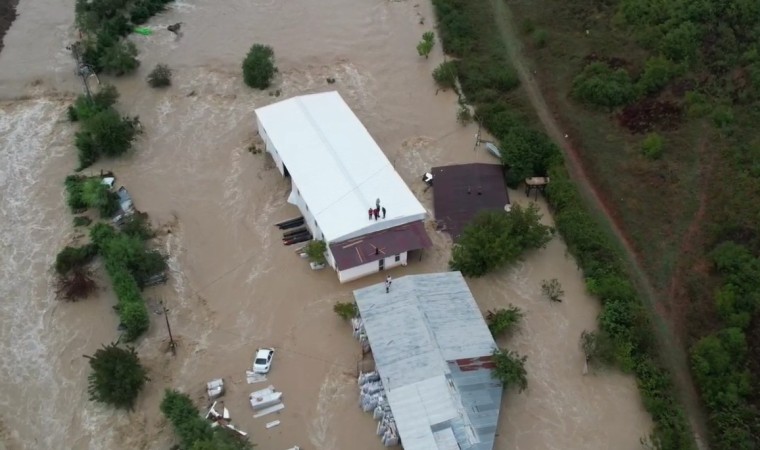 Edinilen bilgilere göre, Hacımaşlı Mahallesi’nde bulunan dere şiddetli yağış nedeniyle taştı. Bölgede mermer ve mobilya imalathanesi olarak kullanılan 2 binada işçiler mahsur kaldı. Binaların çatısına çıkan 7 işçi, itfaiyeyi arayarak yardım istedi. Olay yerine itfaiye ve sağlık ekipleri sevk edildi. Ancak suyun debisinin yüksek olması nedeniyle ekipler işçilere müdahale edemedi. İşçileri kurtarmak için bölgeye helikopter istendi. İşçilerin kurtarılması için helikopter bekleniyor.