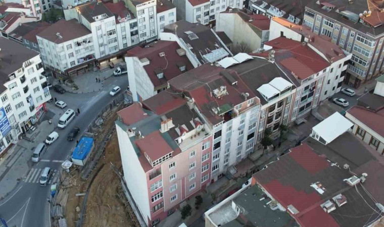 Arnavutköy’de iddiaya göre bir inşaat çalışması nedeniyle aynı sokakta bulunan 3 binada hasar ve kayma meydana geldi. Binalarda oturan vatandaşlar panikle sokağa çıkarken, hasar gördüğü iddia edilen binalar ve inşaat alanı dron ile havadan görüntülendi.