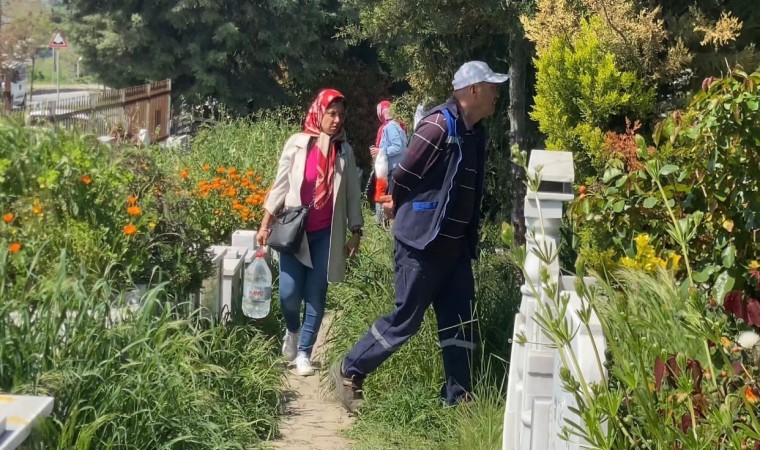 Arnavutköy’de bulunan Haraççı Mezarlığı’nda bayram öncesi yoğunluk oluştu. Vatandaşlar hayrat çeşmelerinden doldurdukları sularla yakınlarının mezarlarını suladı ve bakımlarını yaptı. Yakınlarının mezarlarına gerçekleştirilen ziyaret sırasında dualar okundu.