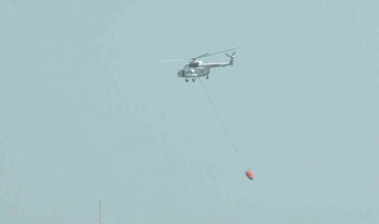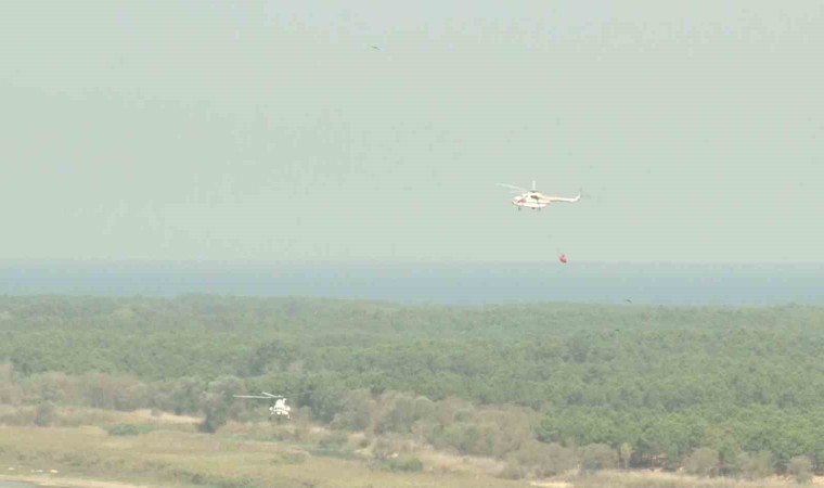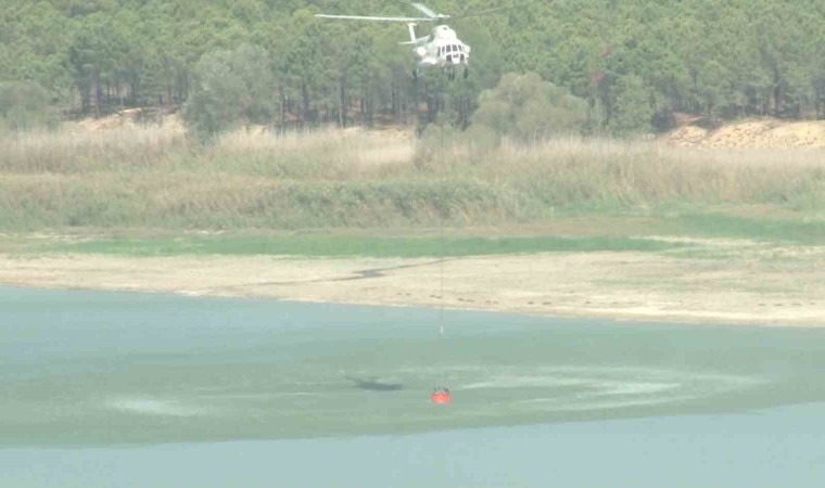 Söndürme çalışmaları dronla da görüntülendi. Görüntülerde Terkos Gölü’nden su alan helikopterlerin yanan alana söndürme ve soğutma çalışması yaptığı da görüldü.