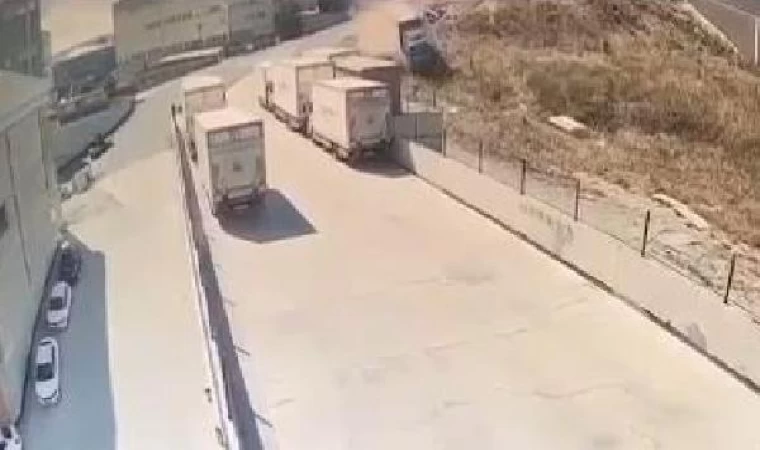 Taylan ERGÜN / İSTANBUL (DHA) ARNAVUTKÖY’de park halindeyken frenleri boşaldığı öne sürülen TIR yokuş aşağı hareket etti. Fabrika duvarına çarparak durabilen TIR güvenlik kamerasına yansıdı.
