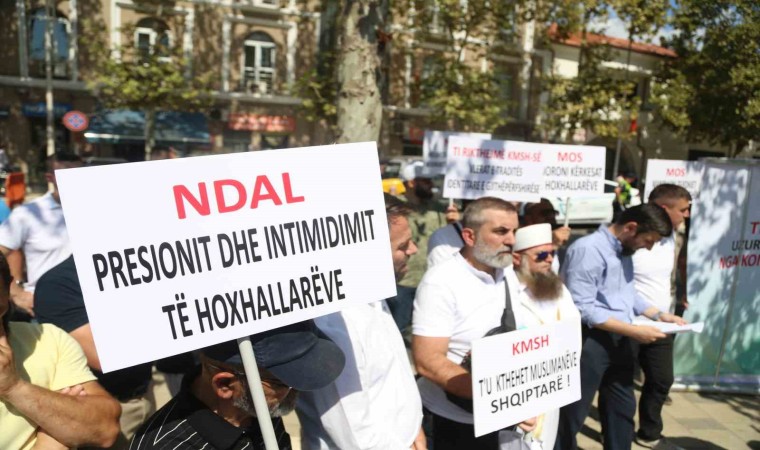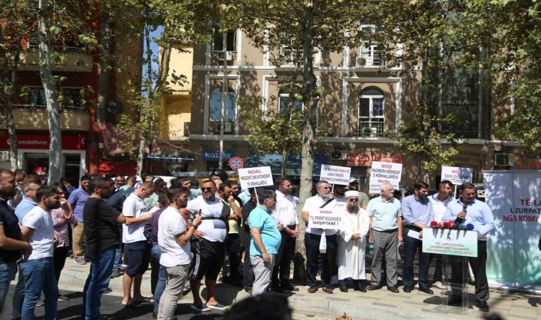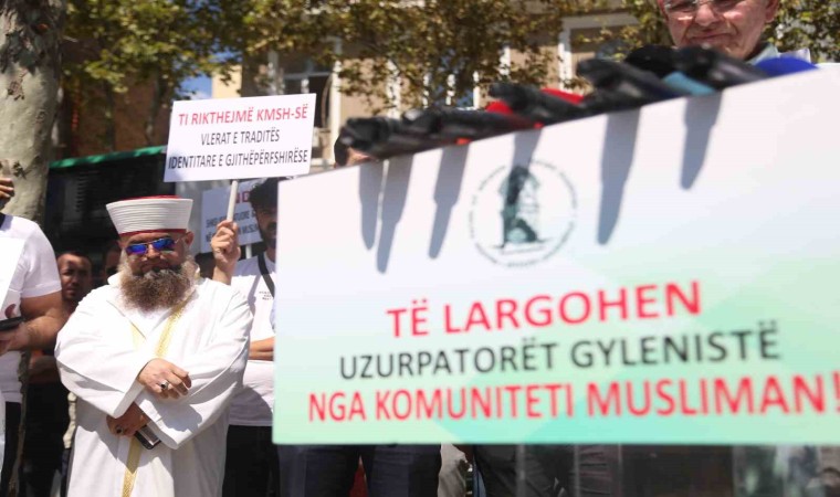 Arnavutluk’un başkenti Tiran’da Arnavutluk Müslümanlar Forumu üyeleri, FETÖ ile bağlantılı olduğu düşünülen Arnavutluk İslam Birliğini (KMSH) protesto etti.