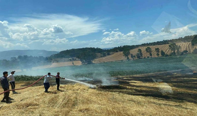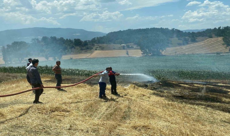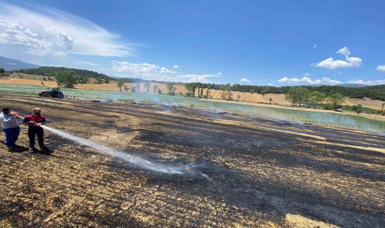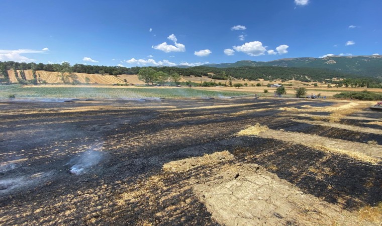 Bolu’da balya yapılan arpa tarlasında henüz bilinmeyen bir nedenle çıkan yangında tarladaki samanlar küle döndü.