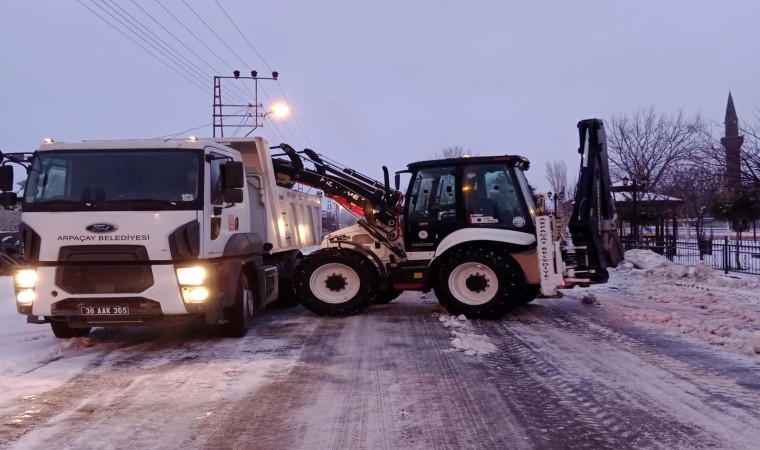 Arpaçay Belediyesi, yoğun kar yağışının ardından ilçe genelinde kar temizleme çalışmalarına hız verdi.