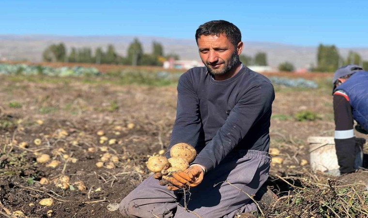 Arpaçay’da yaklaşık 30 yıldır bostancılık yapan Seyfettin Üneş, ilkbaharda ektikleri patatesi hasat ettiklerini söyledi.