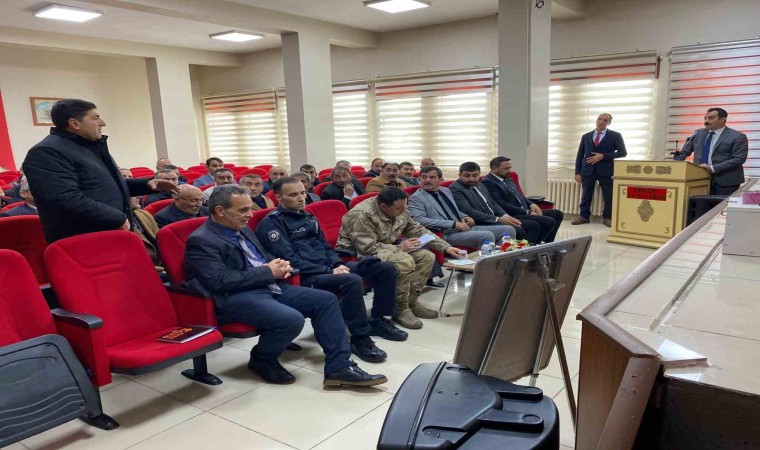 Kaymakam ve Birlik Başkanı Muhammed Burak Akköz Başkanlığı’nda Halk Eğitim Müdürlüğü Toplantı Salonu’nda düzenlenen toplantıya, köy ve mahalle muhtarları, il genel meclisi üyeleri ve ilgili kurum müdürleri katıldı.
