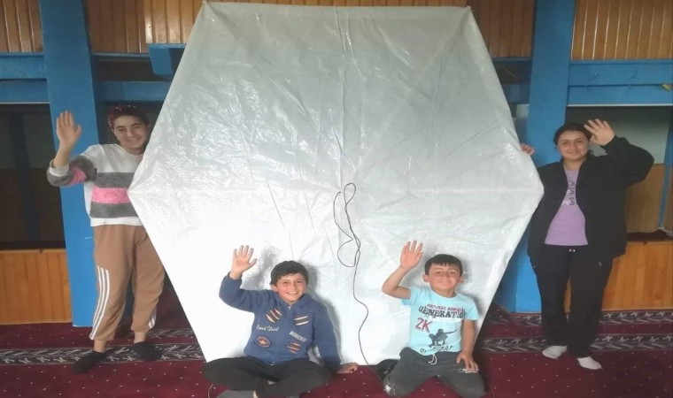 Etkinlik kapsamında camide uçurtma yapan çocuklar, yaptıkları uçurtmaları daha sonra gökyüzüne uçurarak, Filistin’da yaşanan katliama dikkat çekti.