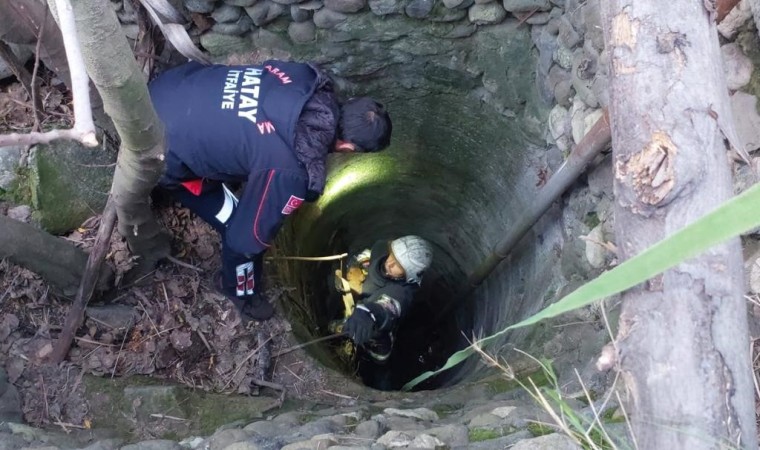 Hatay’ın Arsuz ilçesinde kuyuya düşen yavru köpeği, itfaiye ekipleri kurtardı.