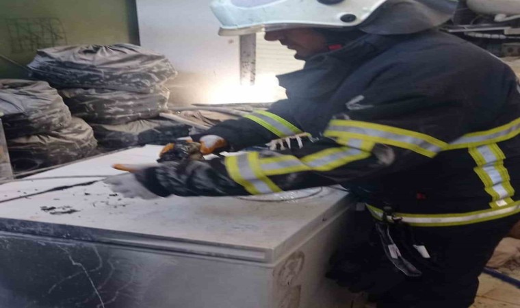 Hatay’da bir markette çıkan yangında iş yerinde hasar aldı.