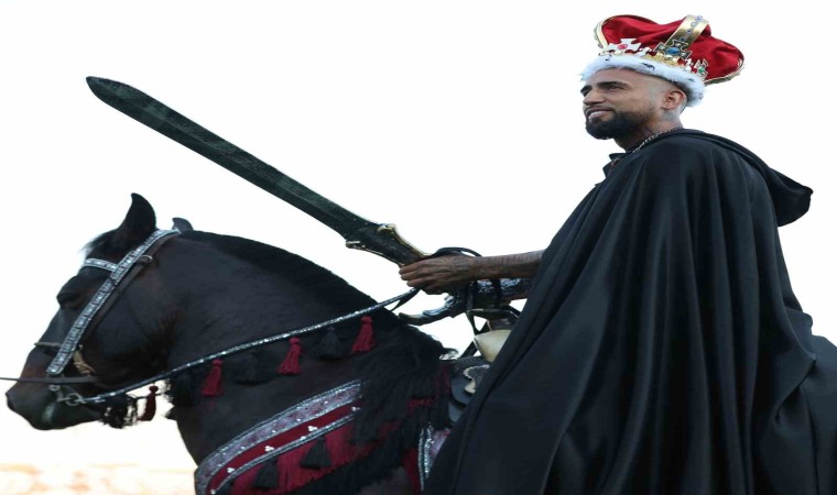 Vidal Monumental David Arellano Stadyumu’na düzenlenen törene helikopter geldi ve sahaya iniş yaptı. Tecrübeli futbolcu, karşılaşma töreninde ata binerek ve kılıç kuşanarak taraftarları selamladı.