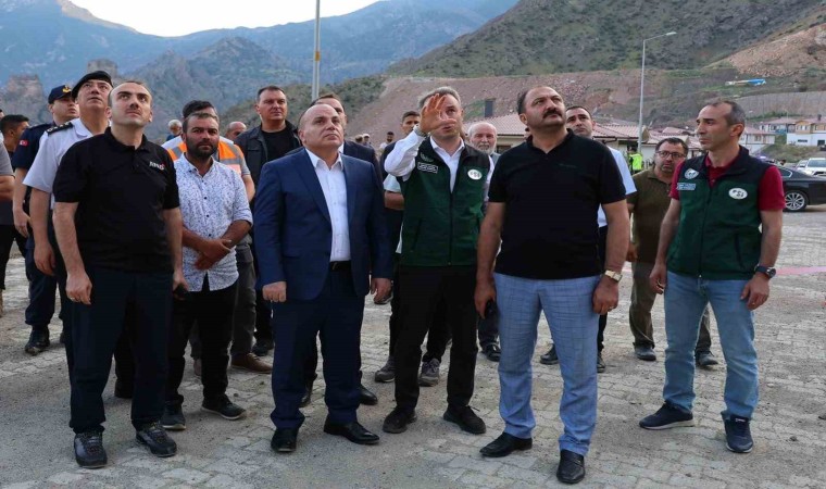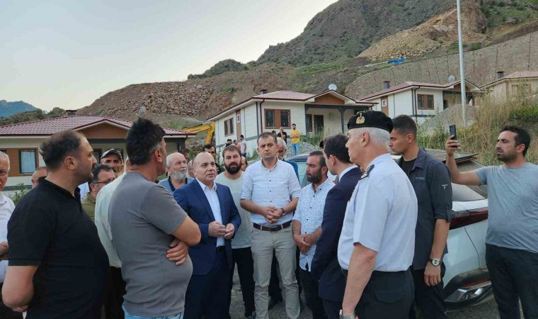 Yusufeli Barajı’nın inşası sonrası yeni yerine taşınan Yeniköy’de, yamaçtan kopan kayalar nedeniyle yaşanan toprak kaymasının ardından bölgeye giderek incelemelerde bulunan Vali Cengiz Ünsal, süreçle ilgili yetkililerden bilgi aldı.