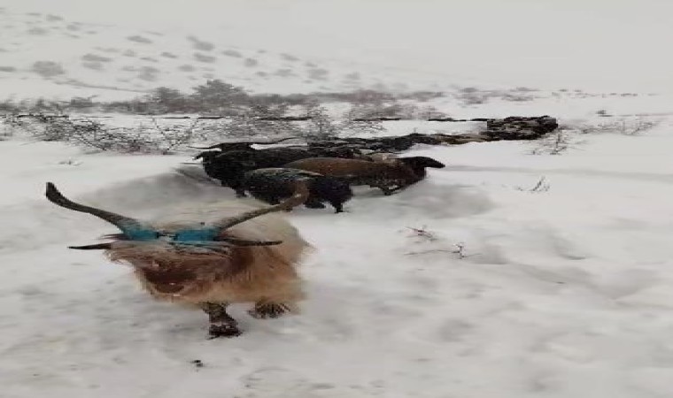 Artvin’in Yusufeli ilçesine bağlı Darıca Köyü Arike mezrasında, aniden bastıran kar yağışı sonrası 250 küçükbaş hayvanıyla mahsur kalan Dursun Cansız, sürüsünü köye indirmek zorunda kaldı.