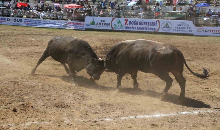 Artvin’in Kafkasör yaylasında bu yıl 7’ncisi düzenlenen Türkiye Boğa Güreşleri Şampiyonasına, Erzurum, Rize Muğla, Aydın, Artvin ve ilçelerinden katılan boğalar bu kez Türkiye şampiyonluğu unvanı için kapıştı.