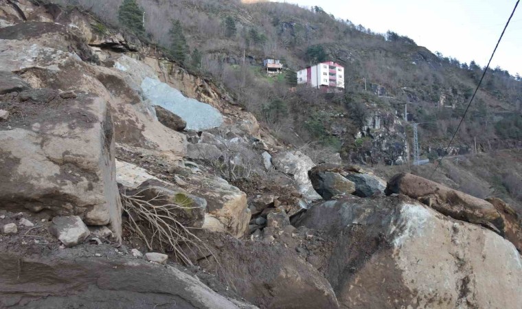 Artvin Borçka ilçesinde önceki gün meydana gelen heyelanda dev kayalar mahalledeki evleri teğet geçti. Şans eseri evlere isabet etmeyen kaya parçaları köy yolunu ulaşıma kapadı.