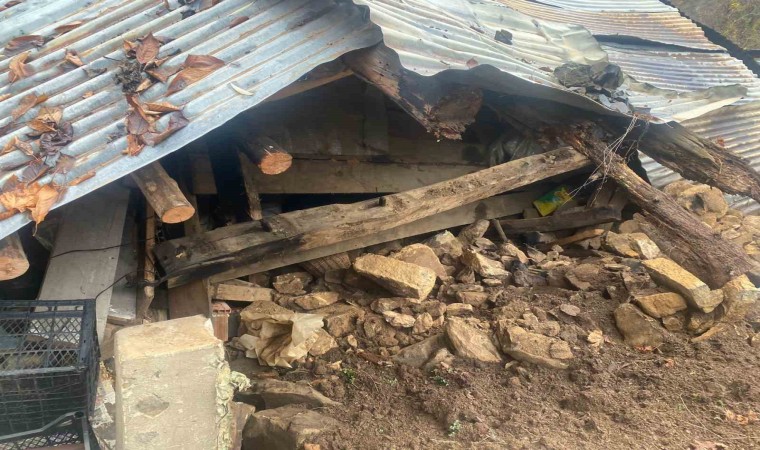 Artvin merkeze bağlı Ortaköy köyünde gece yarısı meydana gelen heyelanda bir büyükbaş hayvan telef olurken, 2 katlı ahşap ev kullanılamaz hale geldi.