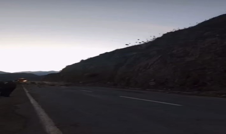 Öte yandan heyelan anı ise bölgede bulunan bir vatandaş tarafından cep telefonuyla saniye saniye kaydedildi.