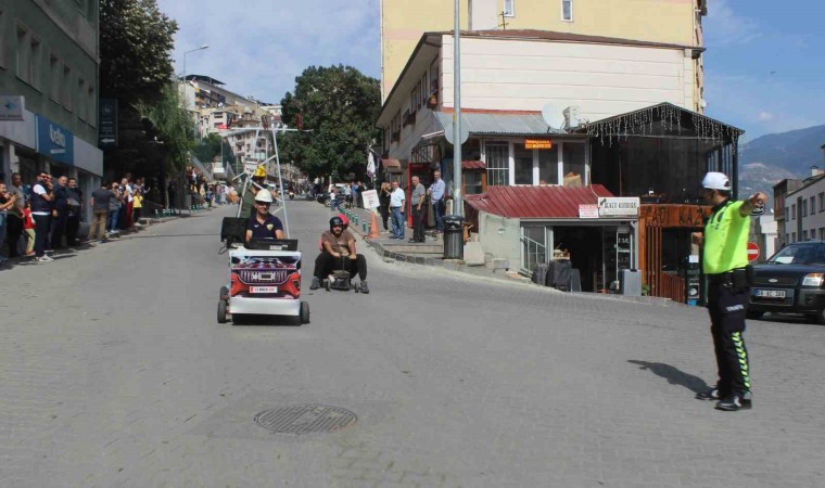 İl Kültür Turizm Müdürlüğü ile Artvin Off-Road Spor Kulübü’nün organizasyonunda düzenlenen yarışa atık malzemelerden tasarlanan motorsuz araçlarla katılan 11 sürücü dereceye girmek için kıyasıya mücadele etti.