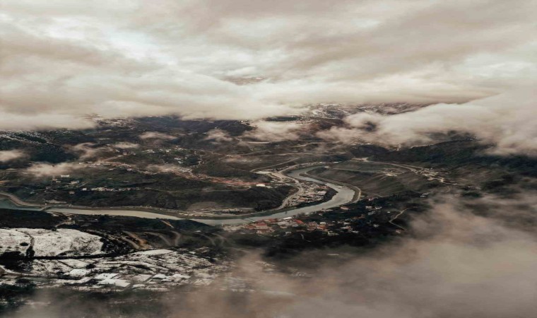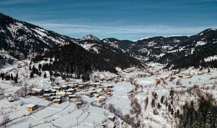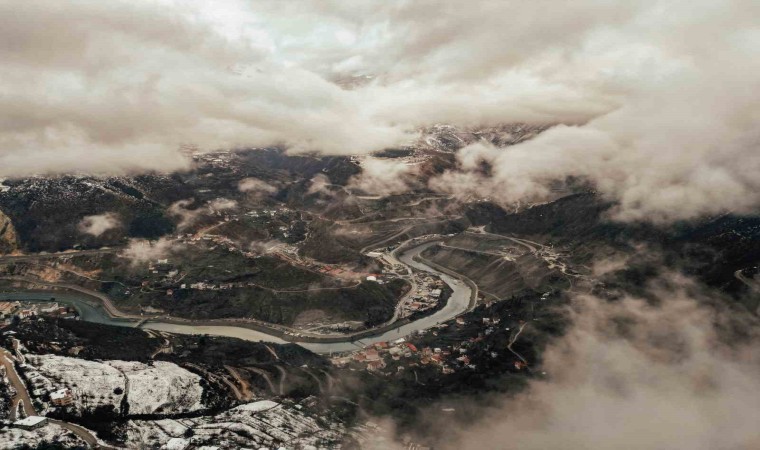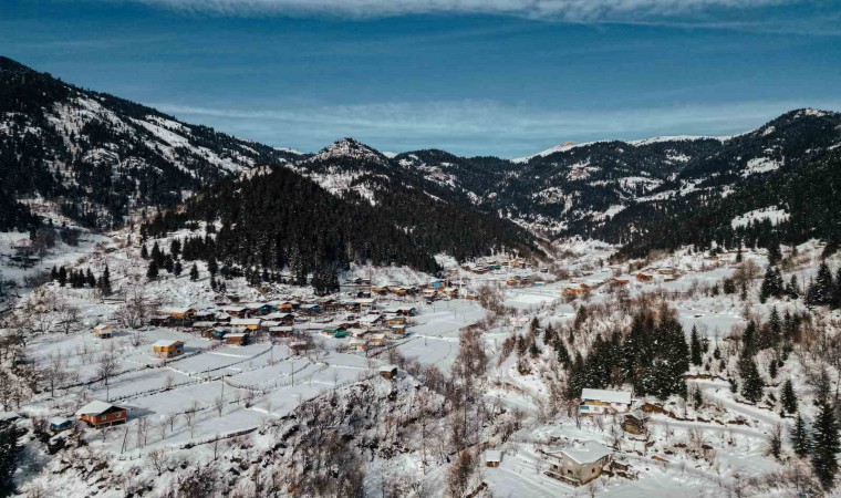 Artvin merkez ve Yanıklı köyündeki kar manzarası havadan görüntülendi. Türkiye’nin en büyük Atatürk heykeli beyaza bürünürken, ahşap mimarisiyle ünlü Yanlıklı köyü ise kartpostallık görüntüleri aratmadı.