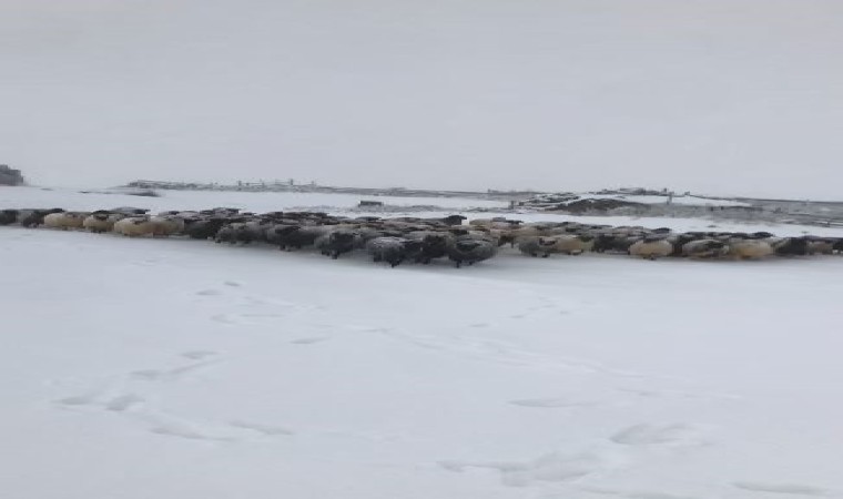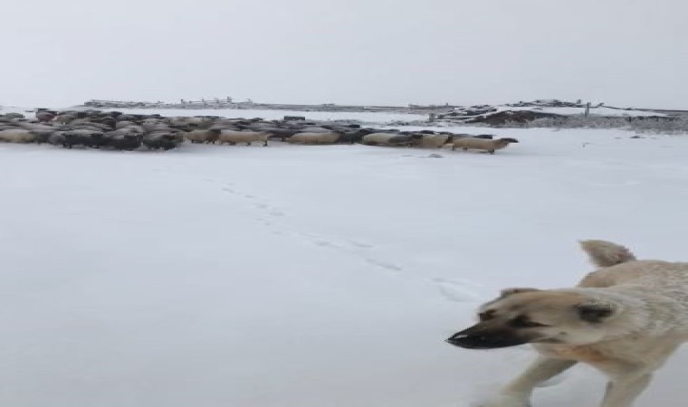 Sürünün kar üstündeki yolculuğu sürü sahibi Onur Güzel tarafından görüntülendi.