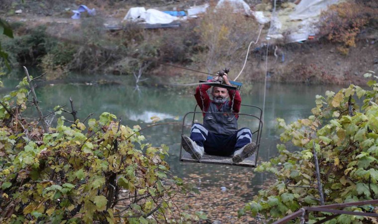 Bölge halkından Bekir Toraman, “Yolumuz yapılmadı, köprümüz sular altında kaldı. Oldukça mağduruz. Çocukların okula gidip gelmesi, bizim işe gidip gelmemiz zor oluyor. Yolun tamamlanması 5-6 ay sürecek gibi. Çocukları teleferikle gönderiyoruz. Çocukluğumuzun geçtiği bu tarlalarda önceden meyve toplar, ekip biçer, hayvan otlatırdık. Şimdi ise oltayla balık tutuyoruz” ifadelerini kullandı.