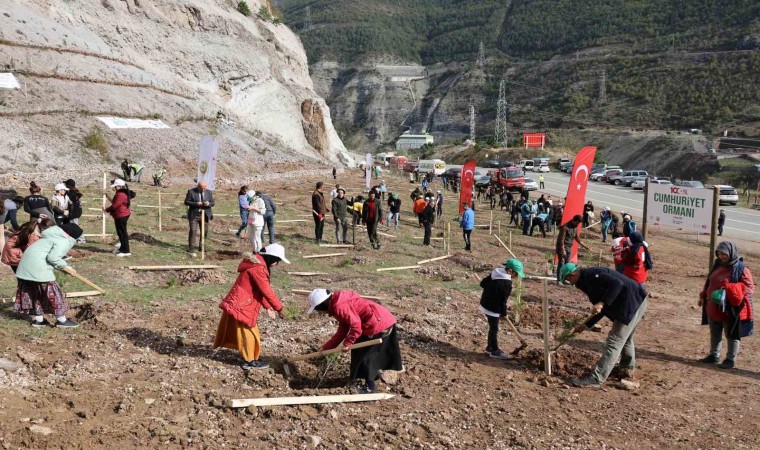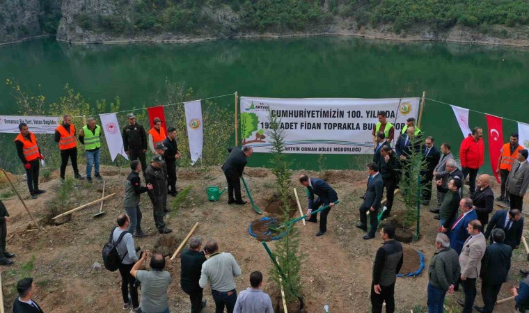 Artvin’de ‘Milli Ağaçlandırma Günü’ etkinlikleri kapsamında 48 farklı lokasyonda Cumhuriyet’in 100. yılına özel 100 bin fidan toprakla buluşturuldu.