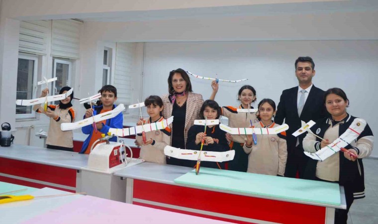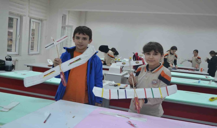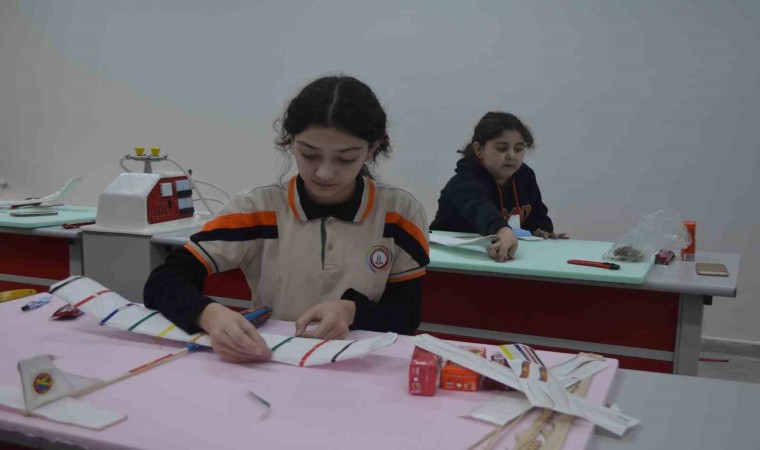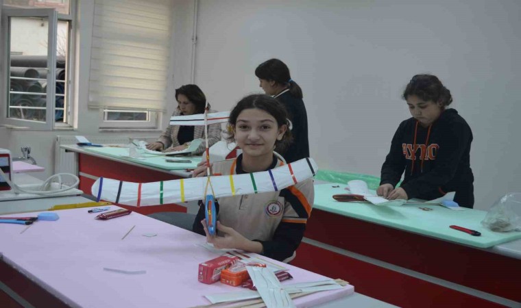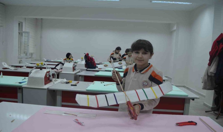 Yoğun talep üzerine ikinci kez açılan kursta 5 ve 6’ncı sınıf öğrencileri, Türk Hava Kurumu tarafından gönderilen parçaları birleştirerek model uçak yapmayı öğreniyor.