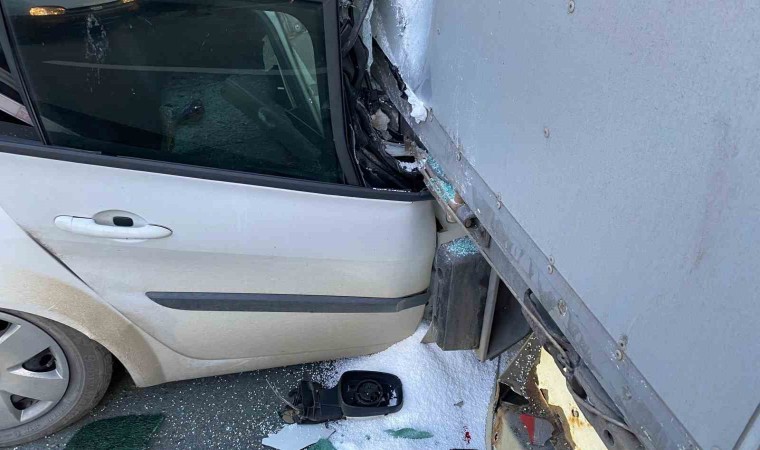 Artvin’in Hopa ilçesinde trafik nedeniyle yolda duran tıra arkadan çarpan otomobil hurdaya dönerken, sürücü kazadan hafif yaralı olarak kurtuldu.