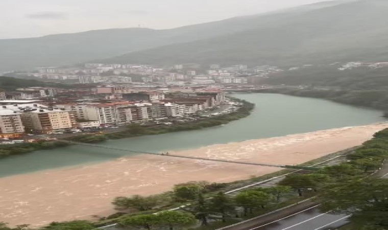 Artvin’de iki gündür etkili olan şiddetli yağışlar sonrası Borçka ilçesinde taşan dere Çoruh nehriyle buluştu. Buluşma anı cep telefonu kamerasına yansıdı.