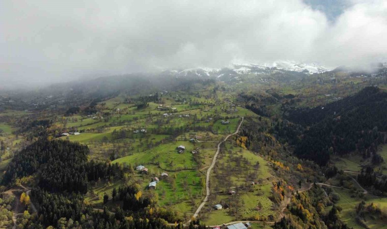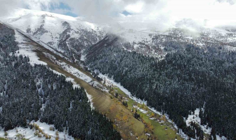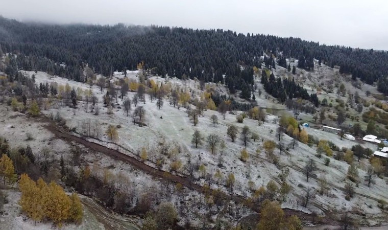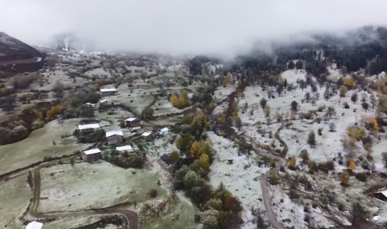 Artvin’de sonbahar renkleri yaşanırken, ani bastıran kar yağışı, yüksek kesimlerde sonbahar ve kış manzaralarının aynı karede yer almasını sağladı.