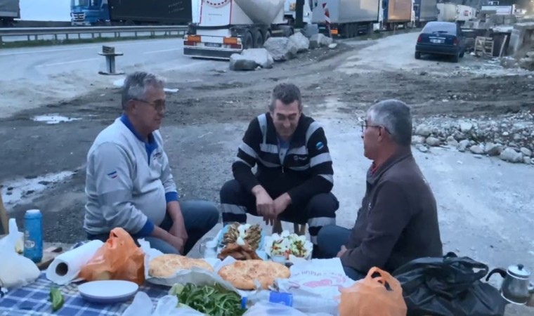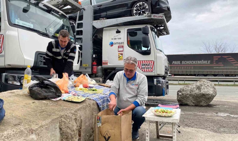 Tır kuyruğu bu kez Ramazan ayına denk gelince, sürücüler araçlarında kendi imkanlarıyla hazırladıkları yemeklerle oruçlarını açtılar.