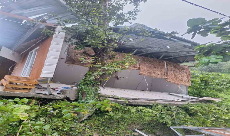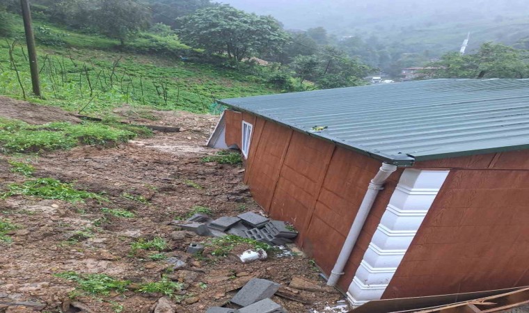 Artvin’in Hopa ilçesinde aşırı yağışların ardından meydana gelen toprak kaymasında bir ev kullanılamaz hale geldi. Heyelan anı güvenlik kamerasına yansıdı.