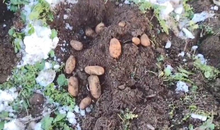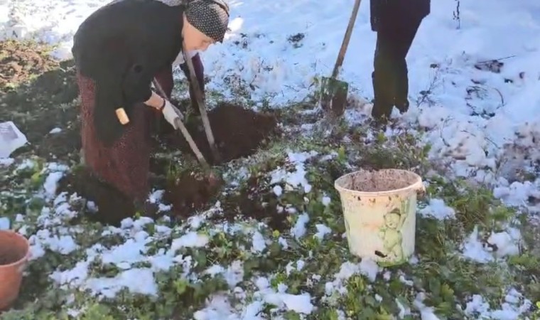 Artvin’in Şavşat ilçesine bağlı Şenköy’de bu yıl kar erken yağınca bölge halkı, toprak altından olan patatesleri çıkartmak için önce karları temizledi.