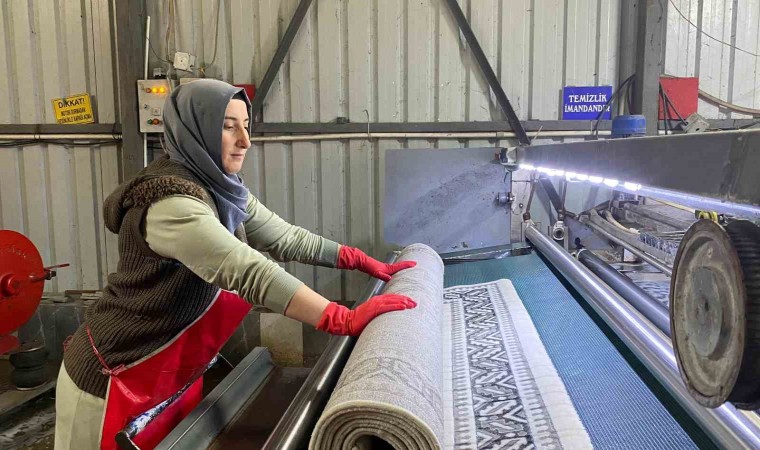 Artvin’in Hopa ilçesinde 39 yaşındaki kadın girişimci Havva Bozkan, kurduğu halı yıkama işletmesinde kadınlar olarak "Her alanda varız" diyor.