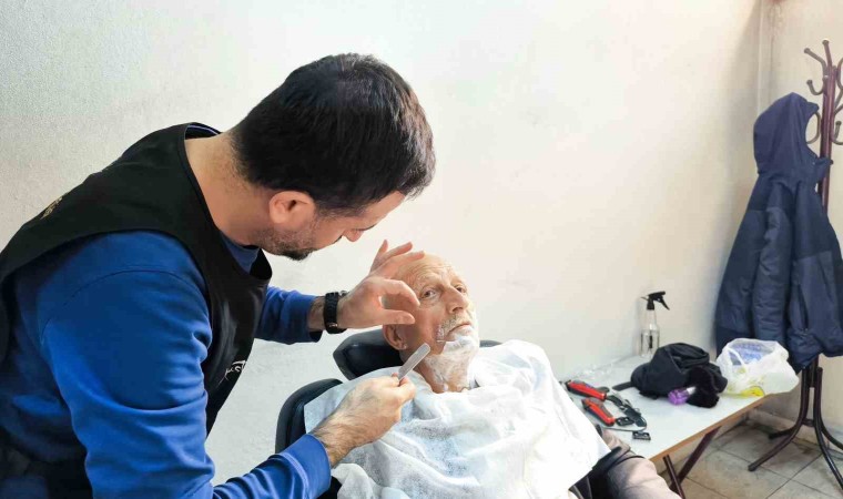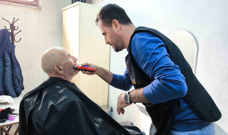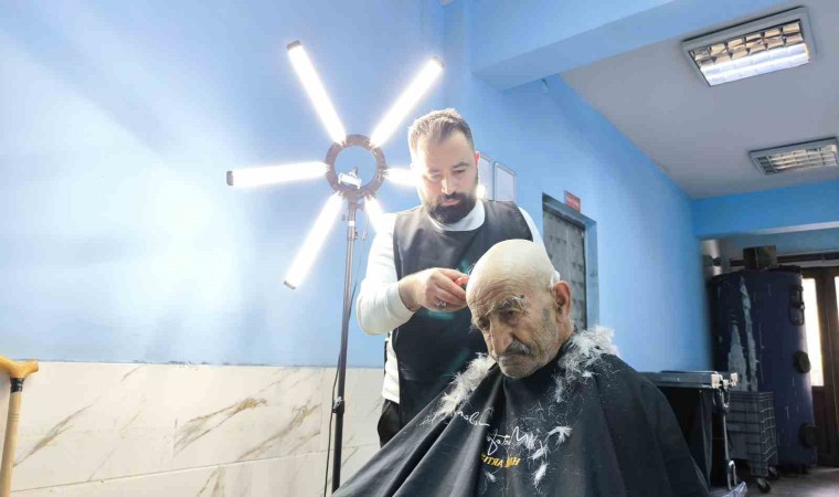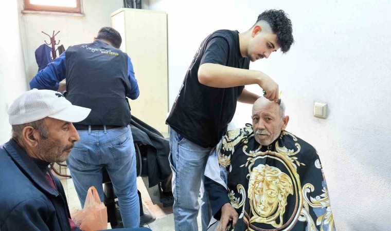 Artvinli berberler, Şavşat ilçesinde yer alan Naime-İsmail Yılmaz Huzurevi’nde kalan erkeklerin saç ve sakal tıraşını yaptı.