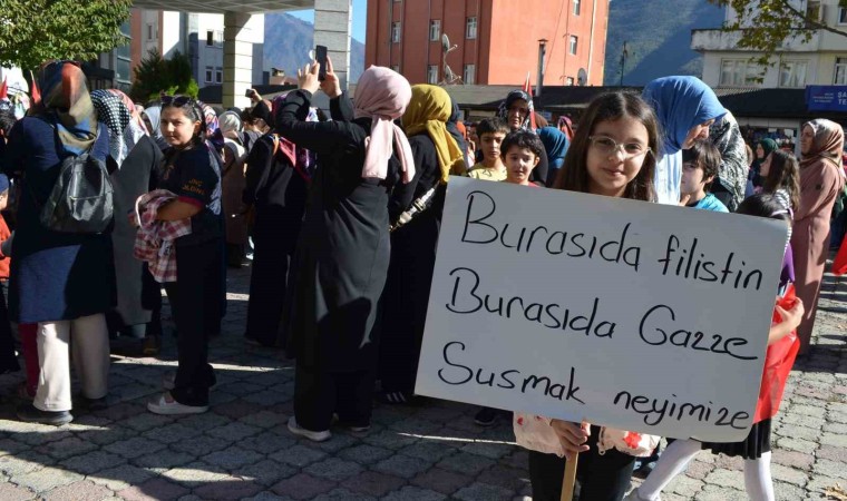 Ekranlarda izledikleri soykırıma duyarsız kalmamak adına Artvinli çocuklar olarak yürüyüşe katıldıklarını söyleyen Mümine Soydan, artık çocukların ölmemesini bu zulme dur denilmesini istedi.