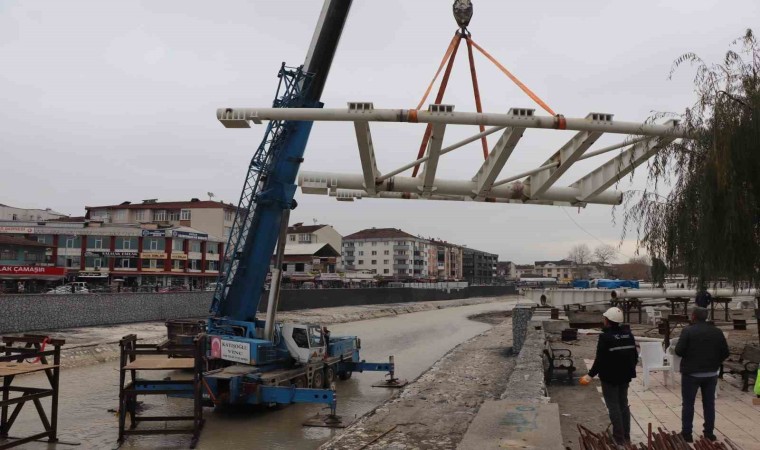 Düzce’nin yepyeni bir çehreye kavuşmasını sağlayacak, şehrin yaşam alanlarının Güney ve Kuzey yönünde de genişlemesine vesile olacak Asar Deresi Projesi’nde yeni aşamaya geçildi. Yapımına başlandığı günden bu yana çeşitli aksaklıklara maruz kalan, deprem ve sel gibi afetlerle sınanan proje alanında asıl yapılardan biri olan köprünün montajına başlandı. Düzce’yi Doğu Batı yönünde kesen Asar Deresi iki yakasını birleştirecek devasa köprünün parçaları geçtiğimiz haftalarda Düzce’ye getirilmeye başlanmıştı. Getirilen parçaların montajlanarak birinci köprünün inşa edilmesine geçildi. Asar Deresi Proje alnında amfi tiyatro ve çevre duvarlarının tamamlanmasının ardından köprü ayak montaj noktalarının hazırlanması ile birlikte getirilen köprü parçaları için çalışmalar başlatıldı. Dere içine konulan vinç yardımı ile Ankara’dan gelen ilk sevkiyatta Köprü 1’in ilk tabliyesinin yerleştirilme işlemi başladı. Köprünün kalan parçalarının hazırlama ve boyama süreçleri imalat fabrikasında devam ederken, sevkiyat halinde gelen parçalar sırası ile yerleştirilecek.