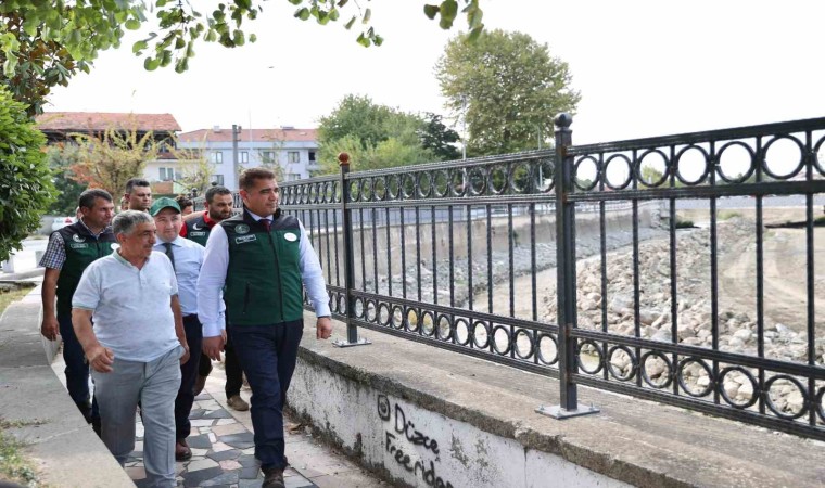 Düzce Valisi Selçuk Aslan, Çay, Aziziye ve Mergiç mahalleleri kesimlerinde sürdürülen çalışmaları yerinde inceleyerek DSİ Düzce Şube Müdürü Deniz Yıldız ile diğer yetkililerden bilgi aldı.