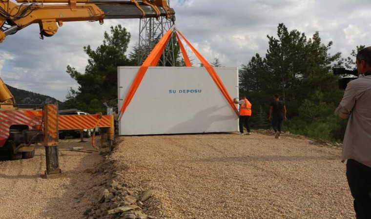Antalya Büyükşehir Belediyesi ASAT Genel Müdürlüğü ekipleri İbradı ve Akseki’de kullanım ömrünü tamamlamış su depolarını yenileri ile değiştiriyor.